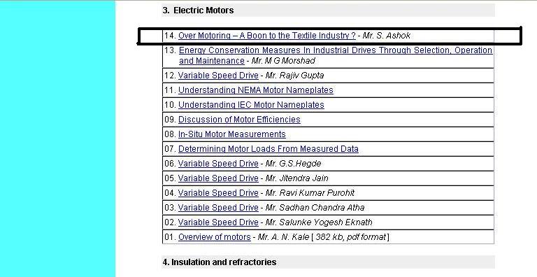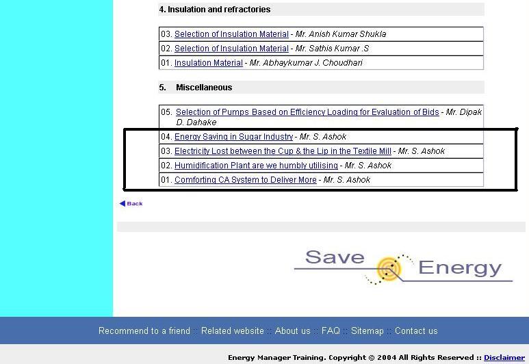 The auditor has published few articles in the Government website under the Minsitry of Power www.energymanagertraining.com. I am pleased to enclose the index of the same.